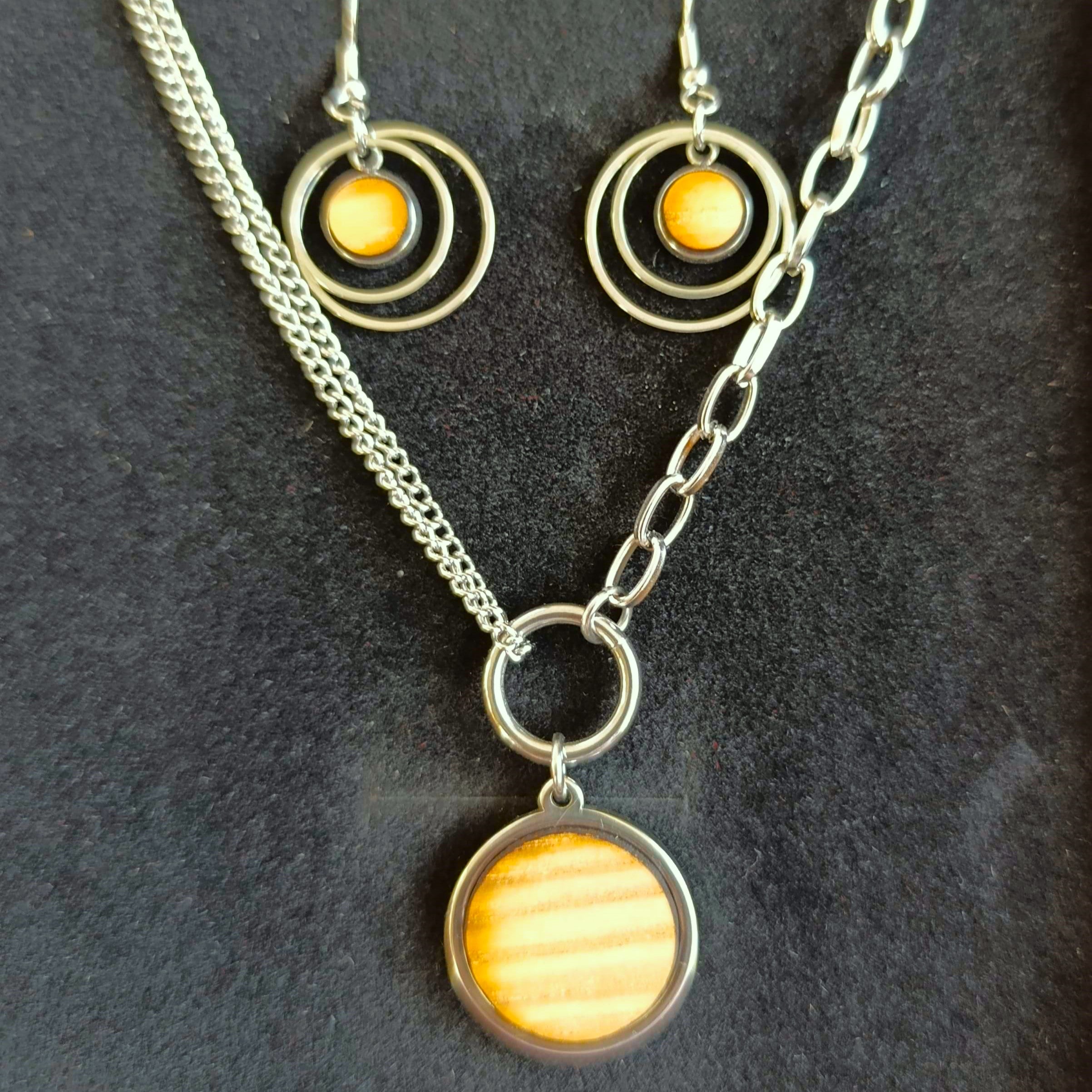 • Schmuckset aus Edelstahl & Eschenholz – modern & natürlich
